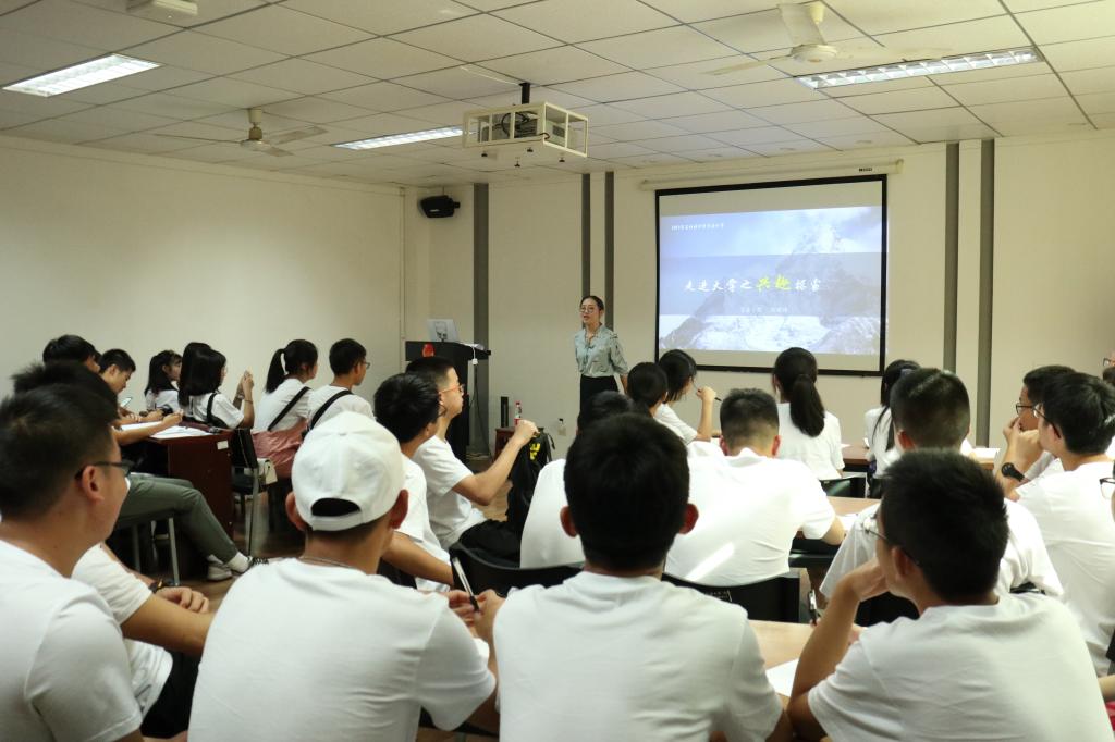 7月16日上午9:00,未来李四光班开营仪式暨“走进老员工活——兴趣探索”主题报告在老员工活动中心306会议室正式开始。伟德bv1946官网团委书记刘明辉老师首先向营员们介绍了分营的活动安排,随后进行了破冰小游戏。在营员们互相熟悉之后,带领营员们开启兴趣探索之旅,让大家探索自己的兴趣类型,解读不同兴趣类型的特征、适合的专业和工作、自我探索的四个维度以及与专业选择的关系。活动现场气氛活跃而愉快。