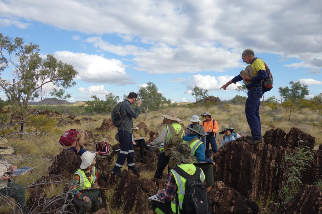 7月6日清晨,携带着各种实习装备和物资,实习团队告别汤斯维尔这座海滨小镇,向它西边700多公里的内陆小城克朗克里(Cloncurry)。经过一天漫长的车程,实习团队傍晚时才到达克朗克里的汽车旅馆。此时国内已是炎炎盛夏,澳大利亚却正值冬季。实习区纬度较低,虽没有酷暑煎熬,但昼夜温差较大(白天可达30℃,晚上最低温为6℃)。实习区所在的芒特艾萨(Mount Isa)地体,是世界著名的矿产资源产地,主要矿床类型包括SEDEX型铅锌矿床、IOCG型铁铜金矿床以及矽卡岩型铁铜-铀矿床。该地区地质演化历史较为复杂,尤其是元古代,经历了两期大的造山事件(Baramudi和Isan)和多期变形变质及拉张盆地事件,地质现象极为丰富。元古代以后构造演化日趋平静,使得原有地质现象得到了很好保留。实习区植被不甚发育,露头裸露条件较好,是詹姆斯库克大学的传统地质填图实习区。