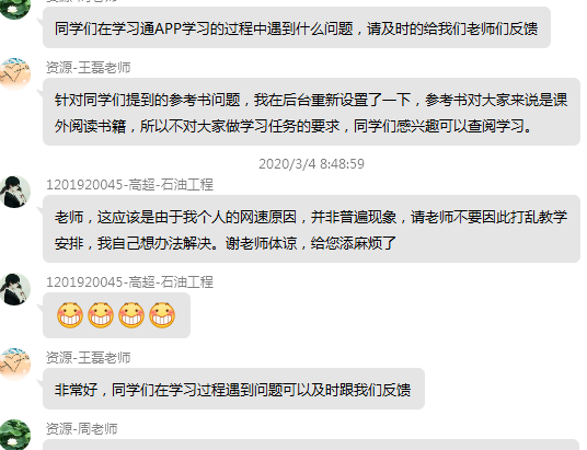 本次课程共有30名石油与天然气工程专业的员工参加。《高等油藏工程》重新设计了教学方案,以超星平台为基础,通过QQ群联系员工的模式来开展教学工作,这样的课堂学习不仅打破了公司课堂固有的教学模式,也让公司的同学们首次体验到了“停课不停学”的别样线上线下全新学习模式。