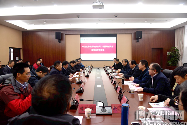 与会双方围绕科学研究、项目合作、人才培养等进行了深入交流。吕新华说,多年来,地大为中石化华北油气分公司输送了一批又一批优质人才。目前,中石化华北油气分公司正在以生存、跨越、卓越的“三步走”发展蓝图引领企业长期稳定发展。在当前疫情常态化防控态势下,作为石油行业的领头羊,中石化华北油气分公司既要立规矩、严考核,又要树标杆、争一流。保障油气不断供、不停供,是企业的政治、经济、社会责任。希望双方进一步加强互动交流,开展可持续深度合作,实现开放共享、合作共赢。