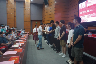 老生代表、员工会执行主席陈智涛同学回忆初入校园时的心情,分享两年老员工活的收获,祝愿新生们求实奋进,勇攀高峰;积极探索,敢作敢为;抵住诱惑,毋忘初心。