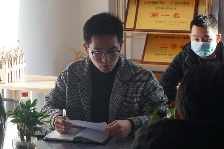 沈传波总结发言。他表示,面对繁重的课业及期末季,各位同学要化压力为动力,以饱满的热情拥抱生活,并充分依托公司的导师制,充分开展互联网+、创青春、挑战杯等双创赛事,积极参加中国石油工程设计大赛、全国油气地质大赛等重磅行业赛事,广泛开展基础科研立项,并借院领导接待日与公司领导、老师进行广泛的交流与沟通,为公司的发展贡献青春力量。