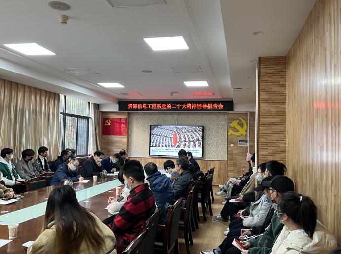 12月9日上午,公司党委书记高复阳给资源信息工程系全体师生党员作党的二十大精神学习专题辅导报告《领会精神 担当使命》,全面解读党的二十大精神,引导党员师生以实际行动深入学习宣传贯彻党的二十大精神,在推进“双一流建设”、落实好立德树人根本任务等方面再创佳绩。