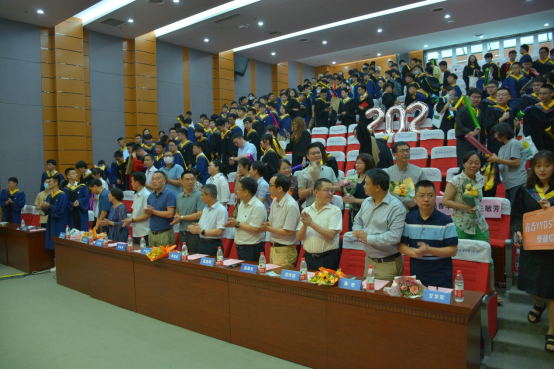 9时整,毕业典礼正式开始。公司全体院领导、各系书记和主任、毕业班班主任、教师代表、院直全体老师、在校生代表、全体2022届毕业生出席本次典礼,党委副书记谭文伦主持典礼。