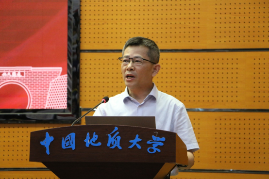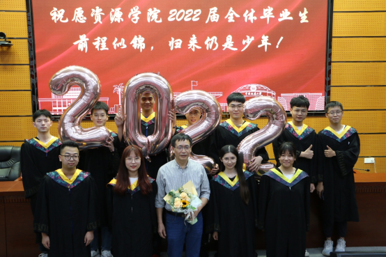 2013届员工、2022年“全国向上向善好青年”入选者欧阳永棚通过线上方式为同学们送上祝福。他深情回忆地大7年求学路,回顾了自己9年间参与朱溪世界最大钨矿床等勘查工作经历,感悟只要能坚持不懈、沉得下心、耐得住寂寞,就能够在平凡的岗位中不断实现自身价值;他谈到地质事业的发展迫切需要有理想、有本领、有担当的青年们加入,希望同学们将个人的理想追求融入党和国家宏伟蓝图中,继续发扬地矿“三光荣、四特别”精神,为保障我国矿产资源安全添砖加瓦,在奋斗中绽放青春之花。