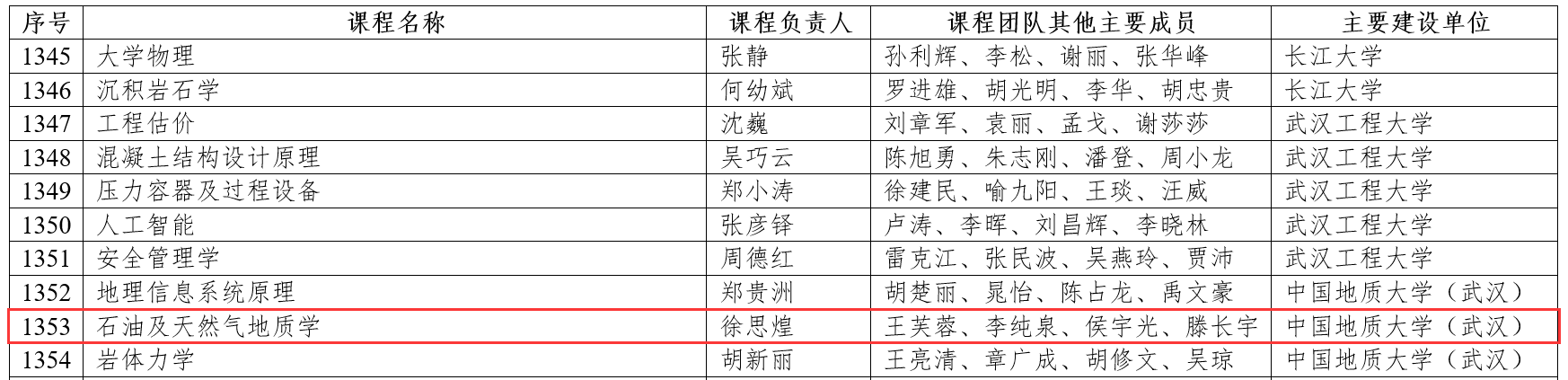 近日,教育部公布第二批国家级一流本科课程认定结果,公司徐思煌教授牵头申报的“石油及天然气地质学”课程获批线下一流课程,蒋恕教授牵头申报的“非常规油气地质与工程一体化虚拟仿真实验”获批虚拟仿真实验教学一流课程。