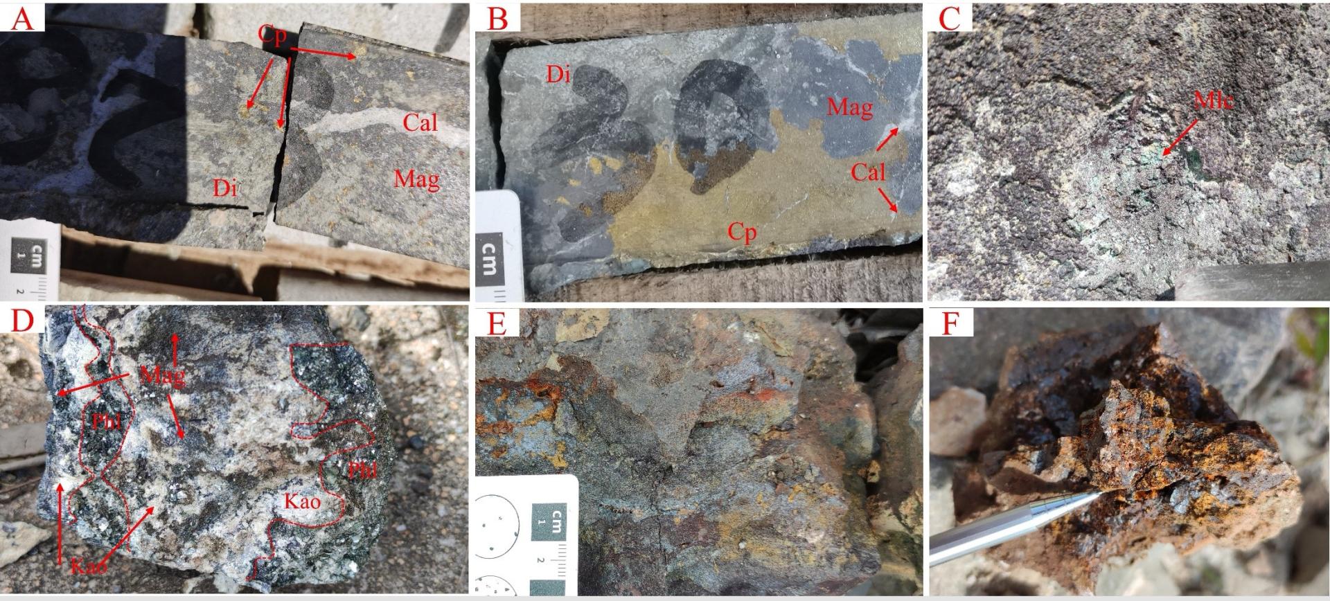 铜绿山位于湖北省鄂东南矿集区西侧,累计查明金和铜金属量分别为194吨和237万吨,占省内累计查明资源量的49%和44%,铁银储量也达到大型规模,是国内少有的铜铁金超常聚集区。7月8日至15日,谭俊老师带队,基地班傅炳臻、冯佳鑫、黄中泽、李龙鹏、黄金贵、杨翱等6名同学组成实习小组。首先学习矿山钻探工作中的钻孔编录方法,提高员工的实践能力,同时对研究区的矿化分带有一个初步地认识,在此基础上安排学习化验样品和矿床地球化学研究样品的规范采集;第二部分是参观铜绿山古铜矿遗址,了解千年矿山的采冶和现代化勘探采矿的风采,随后实地观察野外矽卡岩型接触带、野外露头、赋矿围岩和矿石特征,统计近矿岩体、地层蚀变类型和组合;第三部分是实地调研区内其他成矿类型的矿床,拓宽员工对不同类型矿床的见解。