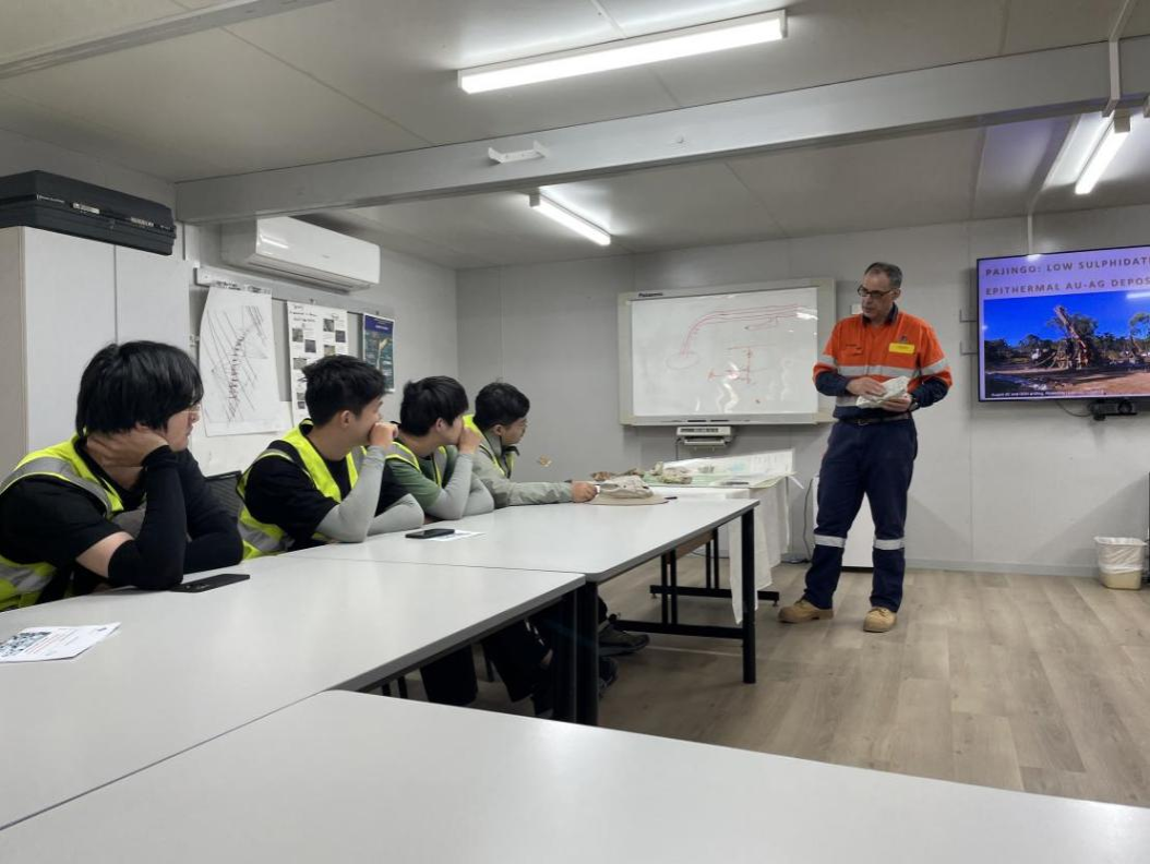 期间,师生在詹姆斯库克大学经济地质研究中心的组织下先后参观了昆士兰州Ravenswood和Pajingo两个超大型金矿。两个矿山的地质工程师详细介绍了矿山开采历史与矿床研究现状,带领大家参观矿区岩心库,并介绍岩心中的各类地质现象与矿物组成,强调不同类型浅成低温热液矿床的蚀变和矿化特征的区别。地质工程师还带领参观了矿区的露天采坑,大家看到了矿山大型机械现场采矿的全过程。在Pajingo金矿大家参观了深孔打钻的现场,地质工程师向大家讲解了钻机运行机理以及打钻速度、终孔深度等各项信息。令人印象深刻的是,Ravenswood金矿凭借其先进的选冶技术,将岩金的工业品位压缩至惊人的0.2 g/t,这使得大规模露天开采成为现实,进一步降低采矿成本。