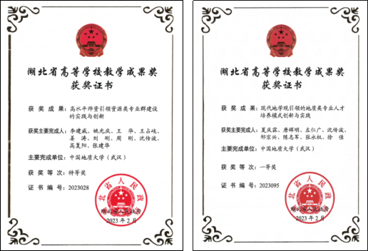 伟德bv1946官网近年来本科公司产品成效显著,牵头获高等教育国家级教学成果奖二等奖1项,获湖北省高等公司教学成果奖特等奖1项、一等奖1项;新增国家级一流本科课程5门;获首届全国教材建设奖优秀教材二等奖1项;获批教育部资源勘查课程虚拟教研室;获批教育部第二批新工科研究与实践项目1项;新增全国模范教师1人、湖北省名师工作室1个和湖北名师1人、楚天名师1人、湖北“十佳师德标兵”1人、湖北“师德先进个人”1人;新增湖北省普通高校优秀教学团队1个、湖北省优秀基层教学组织4个;新增湖北省一流课程9门;获湖北省第八届高校青年教师教学竞赛工科组一等奖、第三届全国大学青年教师地质课程教学比赛一等奖、第四届全国大学青年教师地质课程教学比赛二等奖、湖北省高校教师教学创新大赛一等奖;获中国地质学会2020年度地质类工程专业优秀本科毕业设计3篇、2022年度地质类工程专业优秀本科毕业设计2篇;培养的员工涌现出中国老员工自强之星等各类人才。