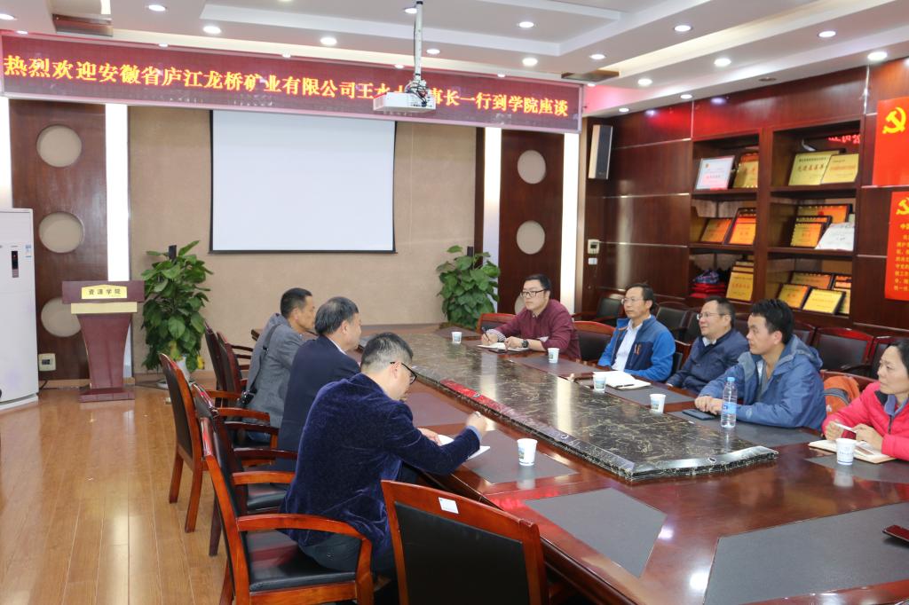 安徽省庐江龙桥矿业有限公司王水土董事长一行到伟德bv1946官网座谈