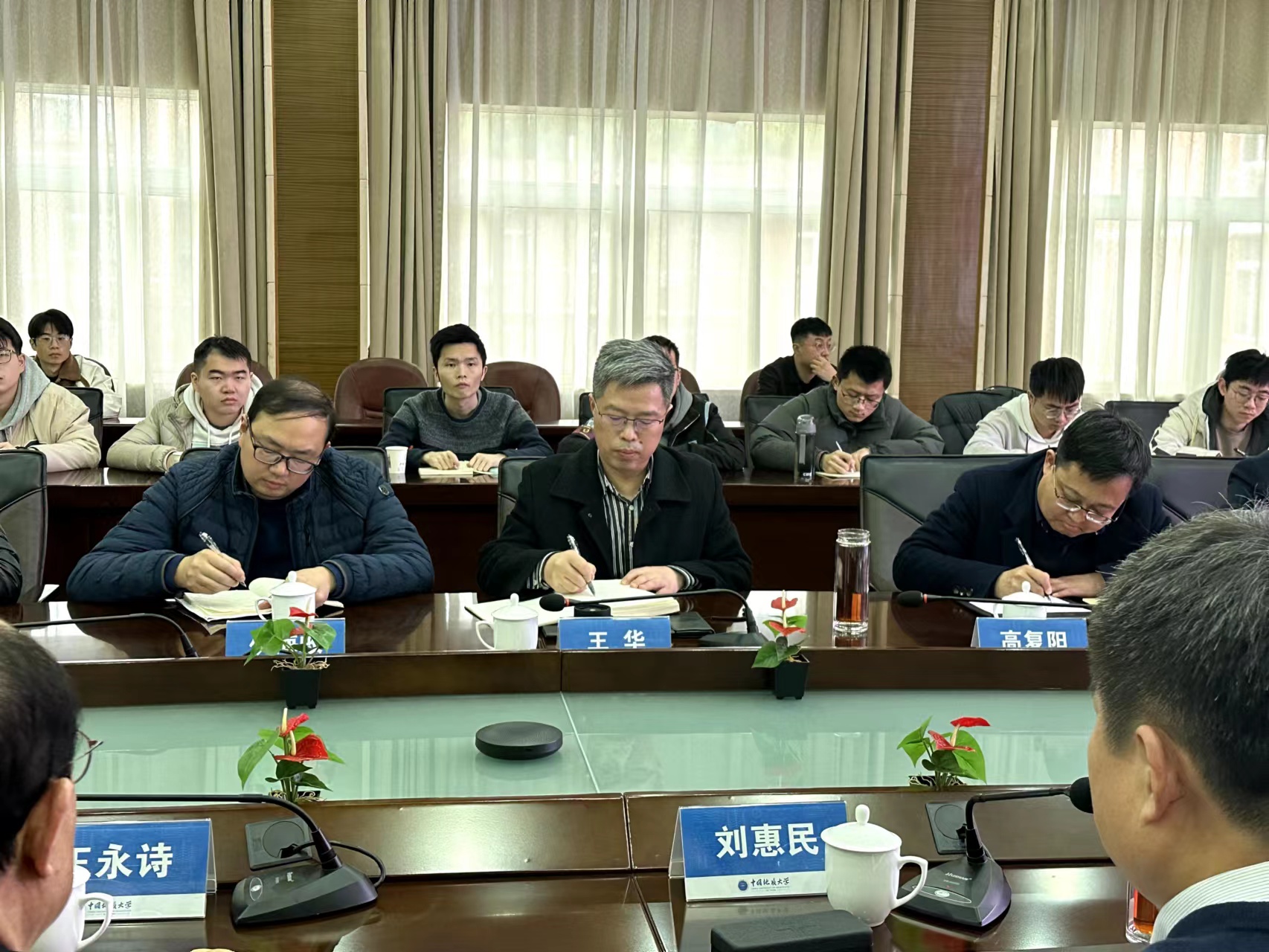 王华对刘惠民一行来校调研表示欢迎,并从团队队伍、学科方向、科学研究、科技创新平台、国际合作等方面介绍公司整体情况。他感谢胜利油田长期以来对公司全方位的大力支持,希望双方深化战略合作,创新合作模式,在服务“百年胜利”建设的同时,推动公司高质量发展。