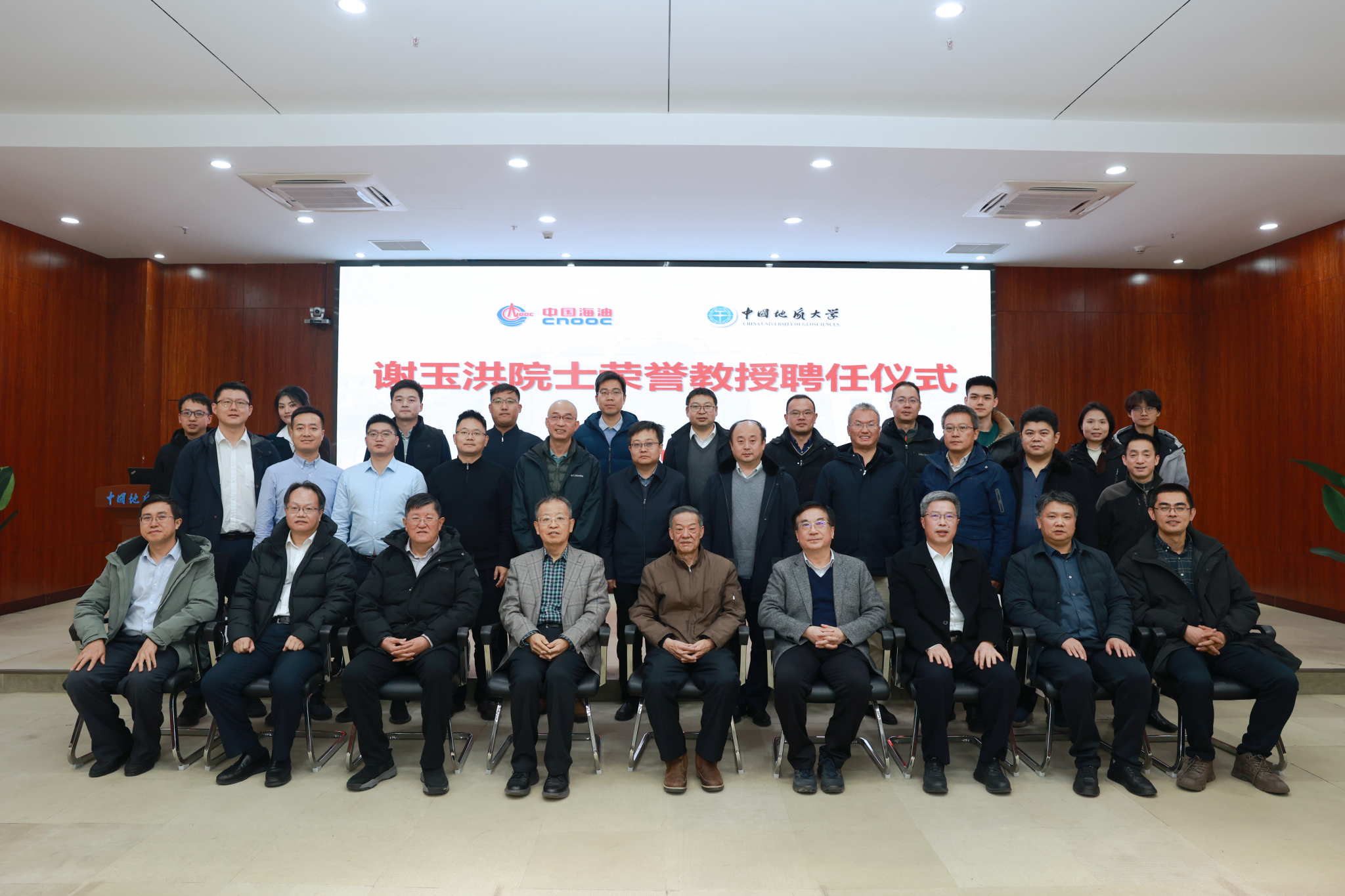 为推动公司人才队伍建设和学科专业发展,12月20日,公司举行谢玉洪院士荣誉教授聘任仪式。中国海洋石油集团有限公司海南分公司副总经理兼总地质师吴克强,湛江分公司风险委专家王振峰,海南分公司总经理助理兼研究公司党委书记、经理裴健翔,中海油研究总院集团专家张功成,公司董事长王焰新院士,副董事长王华,原副董事长姚书振及双方相关单位负责人等参加仪式。