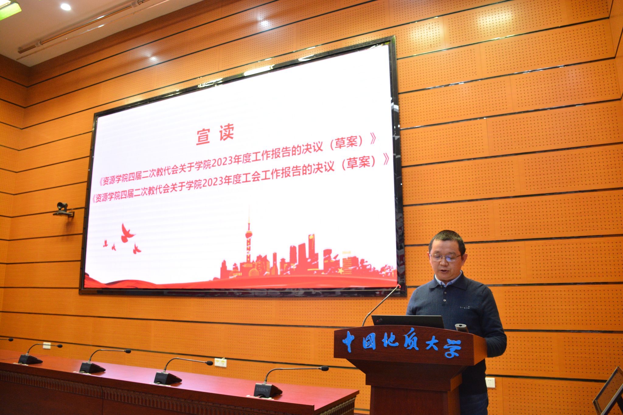 副经理朱红涛宣读《校工会关于同意召开伟德bv1946官网第四届教职工代表大会第二次会议暨第四届工会会员代表大会第二次会议的批复》。