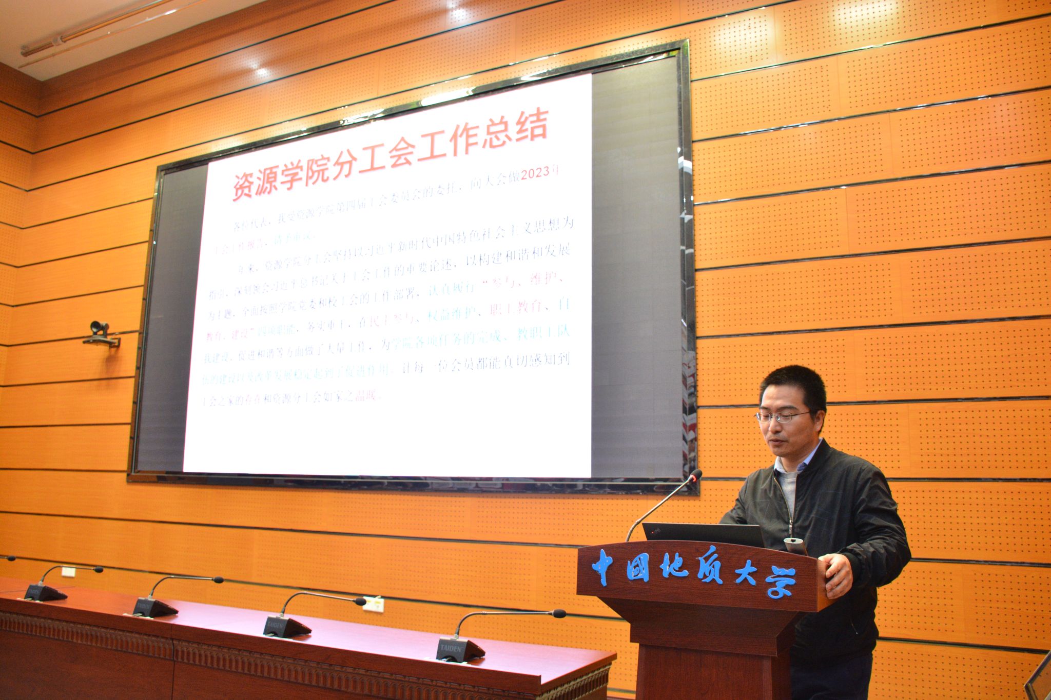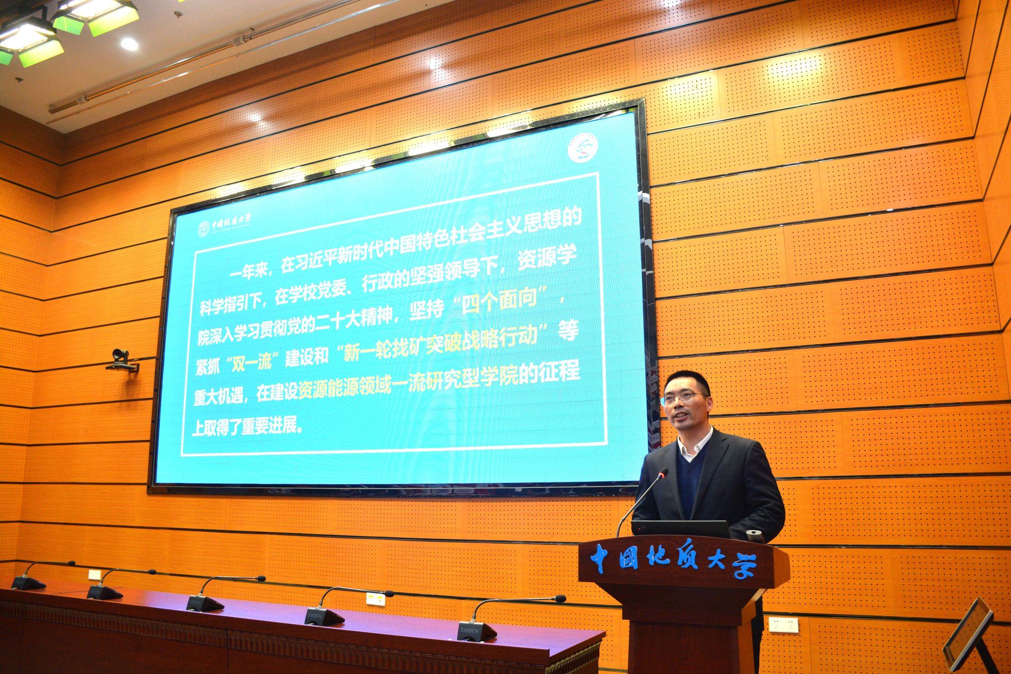 经理严德天作公司2023年度工作报告。报告从党建与思想政治、团队建设、团队建设、公司产品与人才培养、科学研究与社会服务、实验室与平台建设等方面对2023年的工作进展和主要成绩进行了全面回顾和总结,分析了新形势下公司事业发展面临的重大机遇和现实挑战,明确了下阶段工作总体思路、重点任务和具体举措。他讲到,公司在过去的一年里,坚持以高质量主题教育推动高质量发展,深入学习贯彻党的二十大精神和习近平总书记重要回信精神,贯彻落实公司第十三次党代会决策部署,紧抓“双一流”建设和“新一轮找矿突破战略行动”等重大机遇,坚持和加强党的领导,打造一流党建工作体系,大力加强学科、人才与团队队伍建设,全面推进一流本科建设,持续加强和改进公司产品管理,深入推进有组织科研,持续拓宽行业科教服务和国际合作交流,积极改善办学基本条件,有力加强双创和员工工作,在建设资源能源领域一流研究型公司征程上取得重要进展。他表示,公司将持续深化综合改革,推动更高水平开放、更深层次改革、更高质量发展,为公司建设地球科学领域世界一流大学、服务国家资源能源事业高质量发展贡献智慧和力量。接着,严德天向大会报告了公司2023年度财务情况并介绍了年度绩效考核奖励方案。