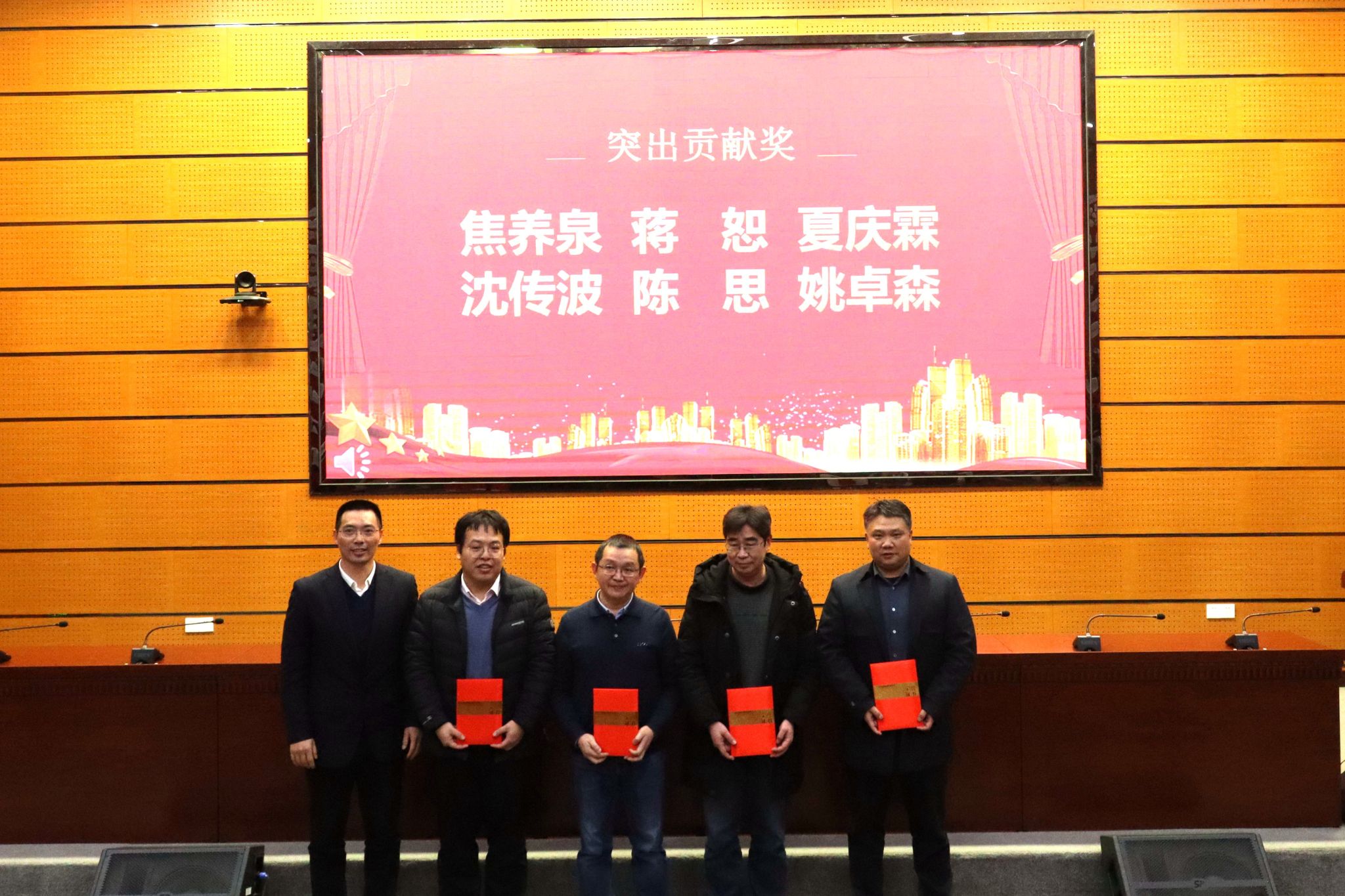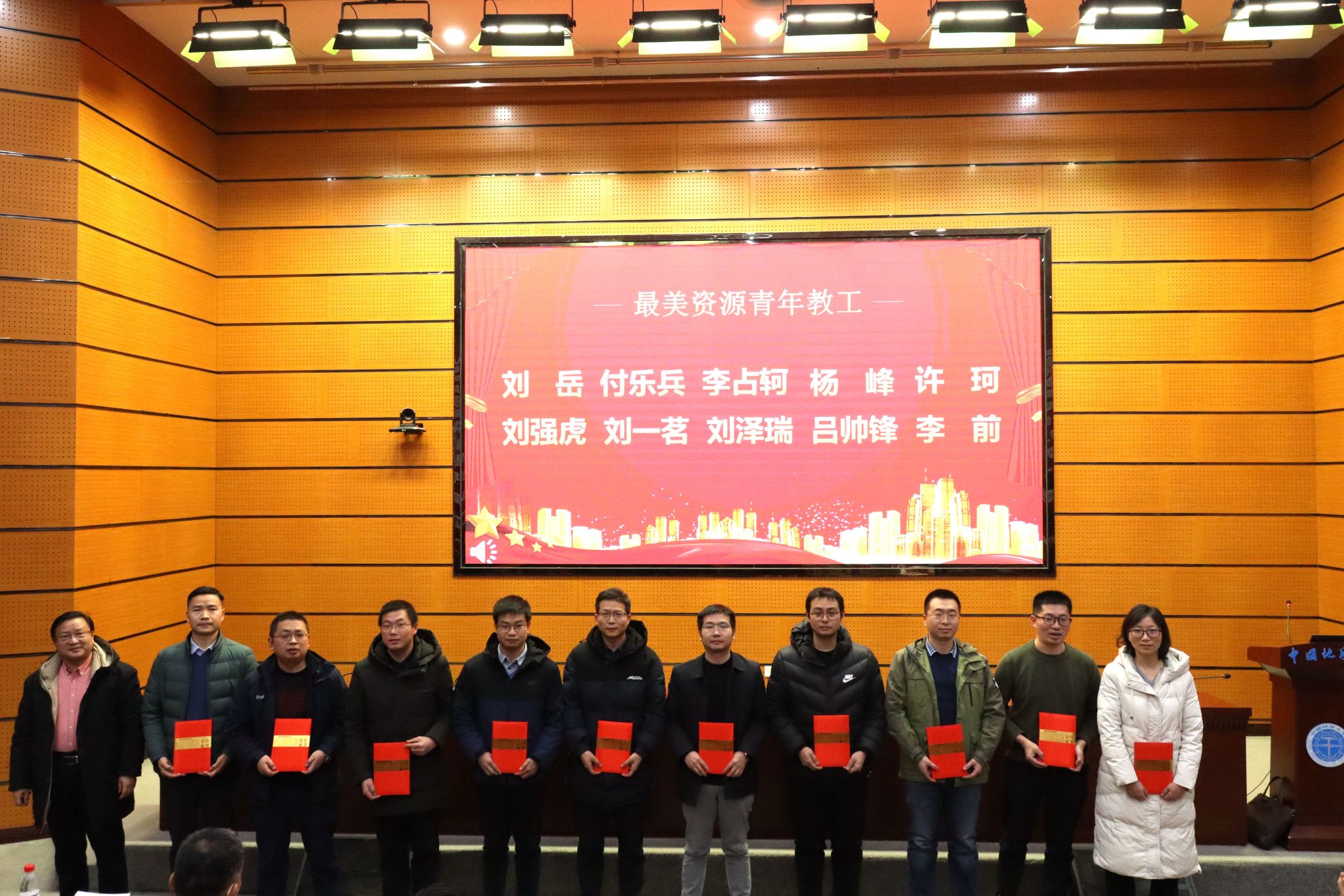 大会举行表彰仪式。公司对一年来在团队建设、人才培养、科学研究、社会服务、承担公共事务等方面表现突出的个人给予了表彰奖励。其中,授予李建威教授“杰出贡献奖”,授予焦养泉、蒋恕、夏庆霖、沈传波、陈思、姚卓森等6位老师“突出贡献奖”,授予刘岳、付乐兵、李占轲、杨峰、许珂、刘强虎、刘一茗、刘泽瑞、吕帅峰、李前等10位老师“最美资源青年教工”荣誉称号,蒋少涌、严德天、高复阳依次为获得者颁奖。