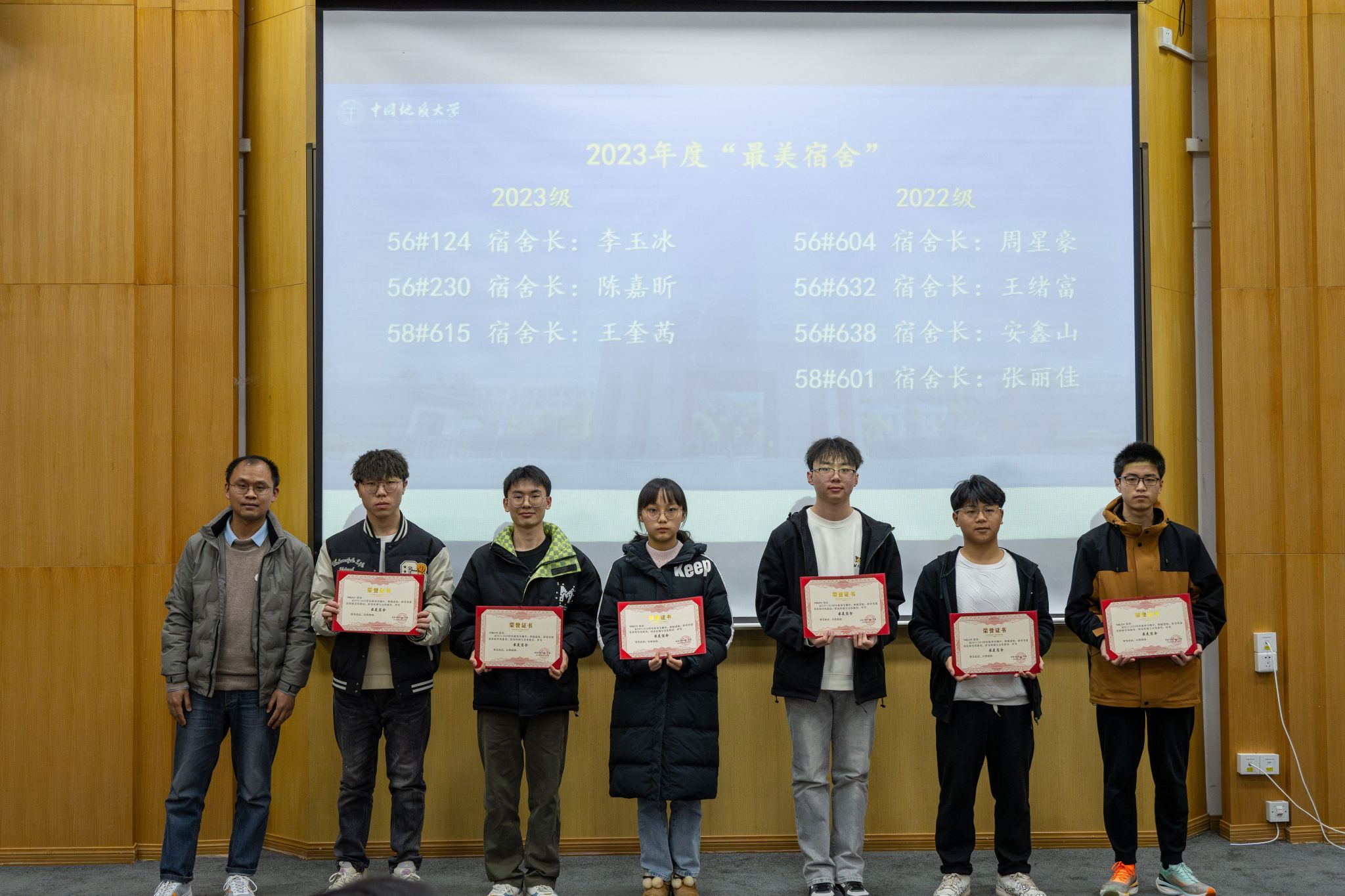 早锻炼先进班级022231班班主任孙艳坤为2023年度获得公司“百佳宿舍”的宿舍长颁发“最美宿舍”荣誉证书。