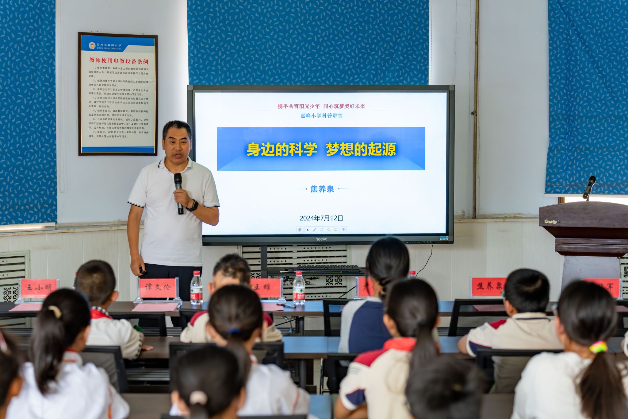 焦养泉为嘉峰小学员工讲授科普课。他以沁水县本地富有的煤层气资源为导入,深入浅出的为同学们讲解了煤炭、煤层气的成因,以及煤层气资源在生活中的应用,引起同学们的热烈掌声。焦养泉寄语同学们认真学习,打好成才基础,并鼓励同学们树立远大理想,点亮逐梦之路。