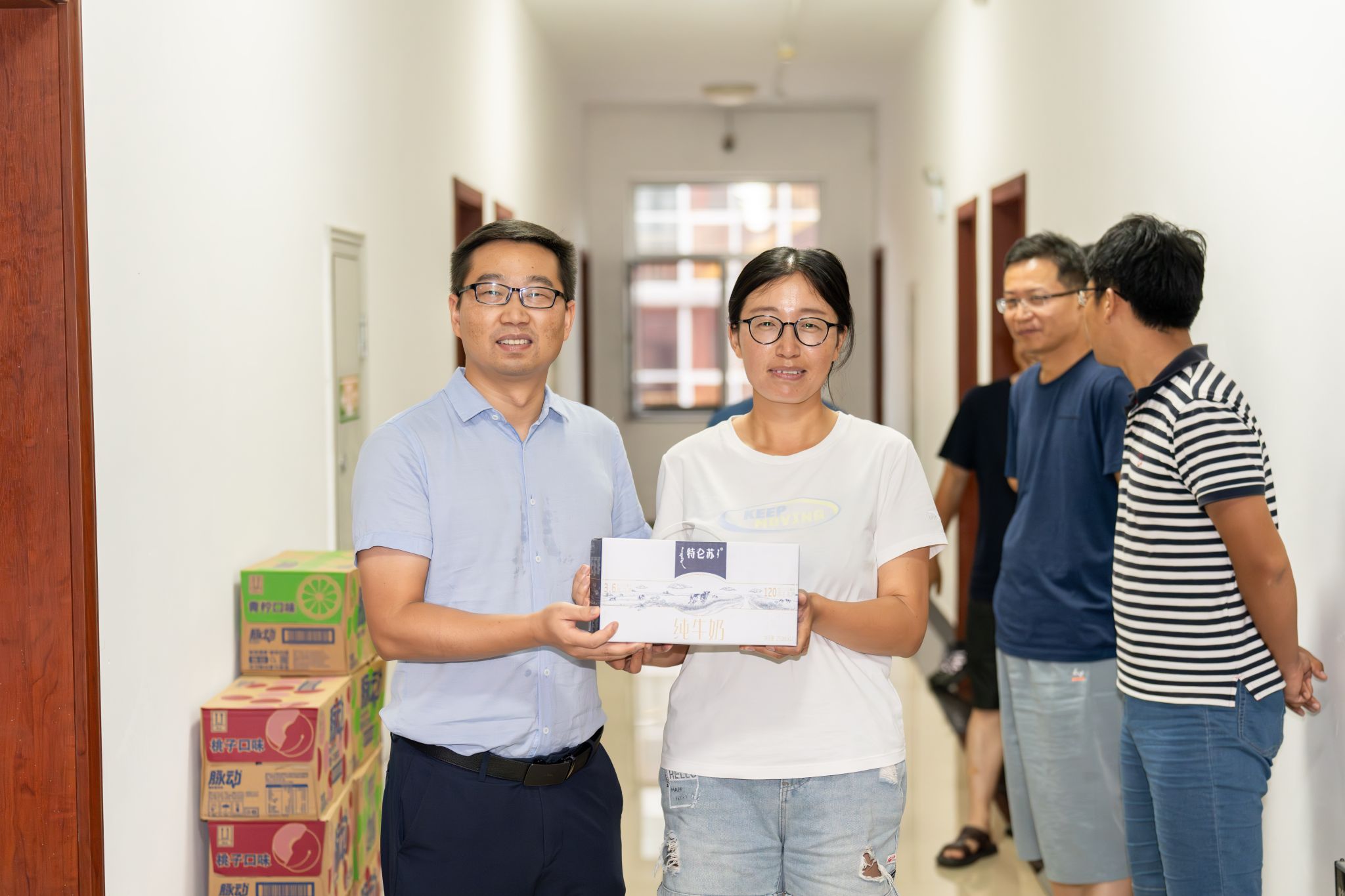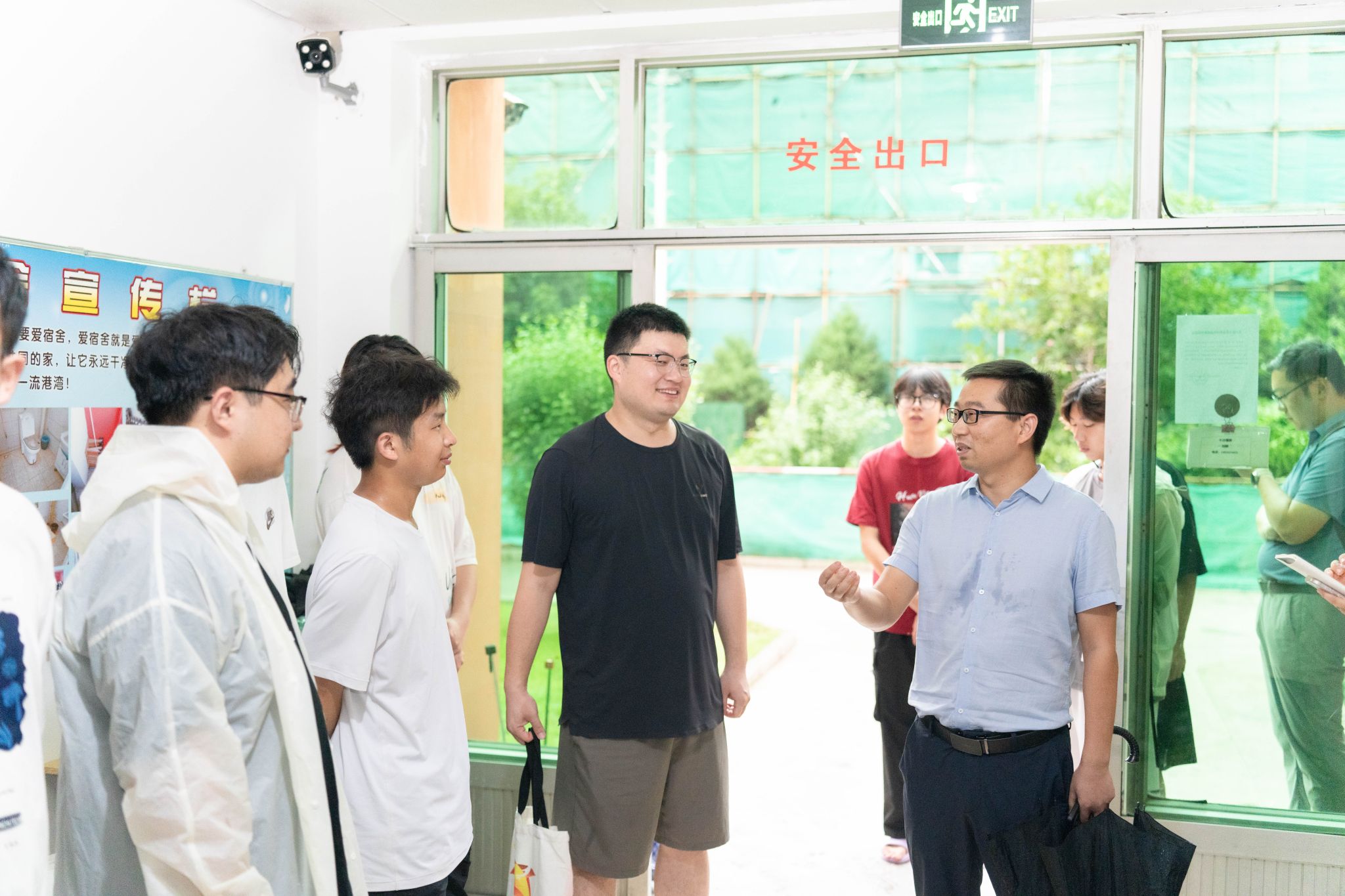 在员工公寓大厅,谭文伦为同学们发放消暑慰问品。他询问了同学们的食宿情况和实习体验,提醒实习期间要注意个人身体状况,希望同学们重视实践探究能力的锻炼,勇于提问、善于提问,在提问求证中将书本理论迁移至野外地质现象中,打好专业基础,浓厚专业兴趣。