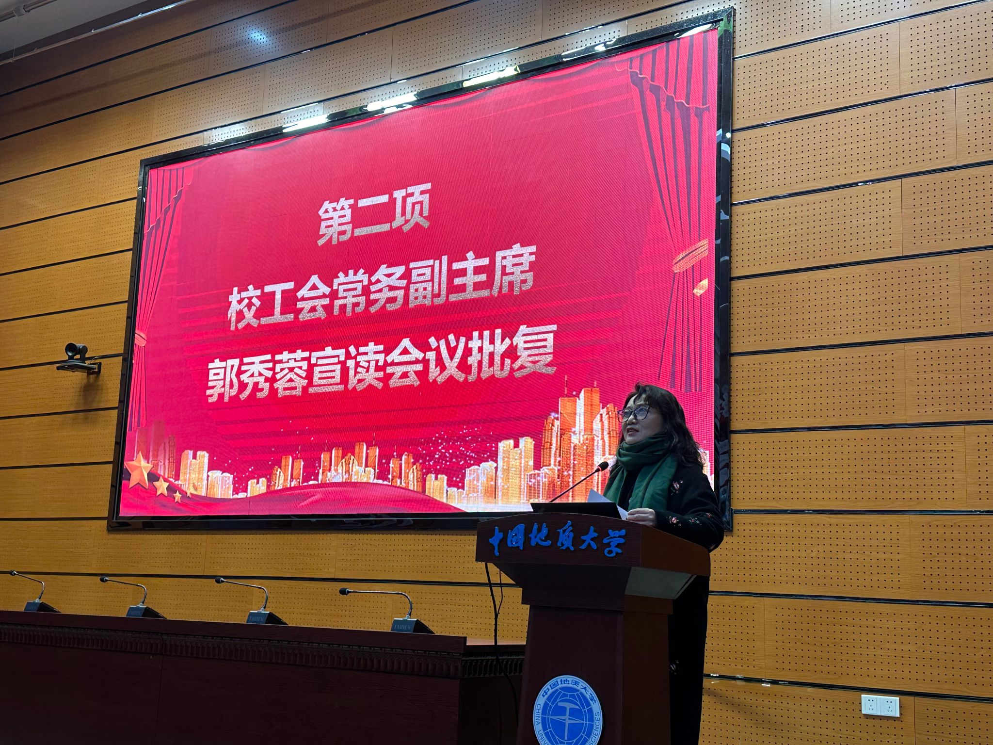 郭秀蓉宣读《伟德bv1946官网第四届教职工代表大会第三次会议暨第四届工会会员代表大会第三次会议的批复》。