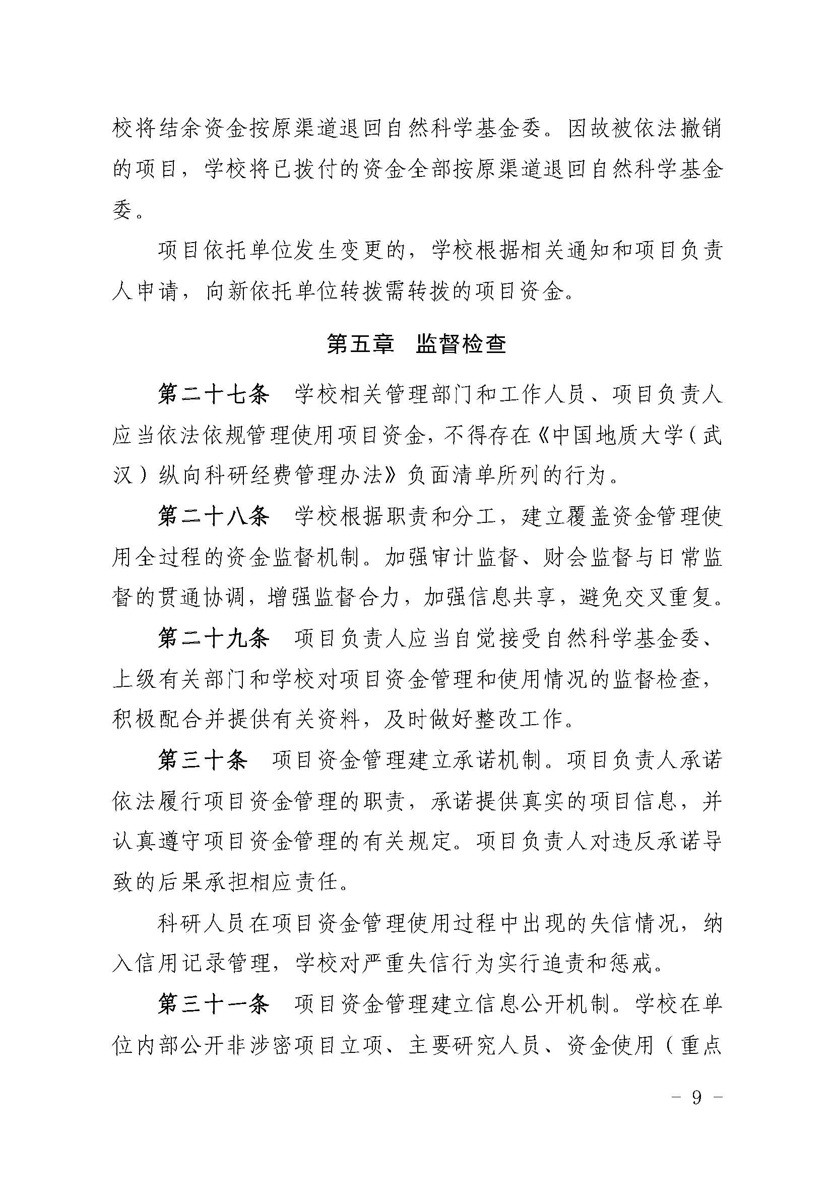 伟德bv1946官网(武汉)国家自然科学基金资助项目资金管理办法