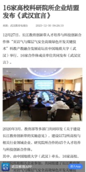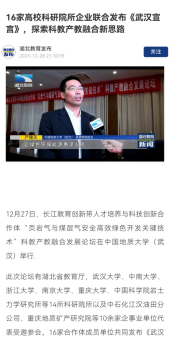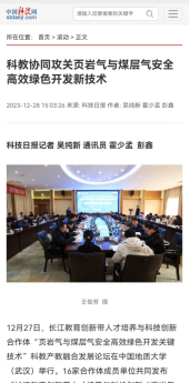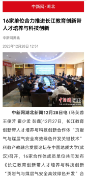 编者按:为深入贯彻习近平总书记关于推动长江经济带发展的重要讲话精神,推动长江经济带高质量发展,服务支撑长江教育创新带建设,更好赋能教育强国、科技强国、人才强国建设,由公司主办、伟德bv1946官网承办的长江教育创新带人才培养与科技创新合作体“页岩气与煤层气安全高效绿色开发关键技术”科教产教融合发展论坛12月27日在公司召开,大会得到了教育部、湖北省的大力支持和悉心指导。光明日报、人民网、中国新闻网、中国科技网、湖北日报、长江日报等多家媒体对此次会议进行了详细报道: