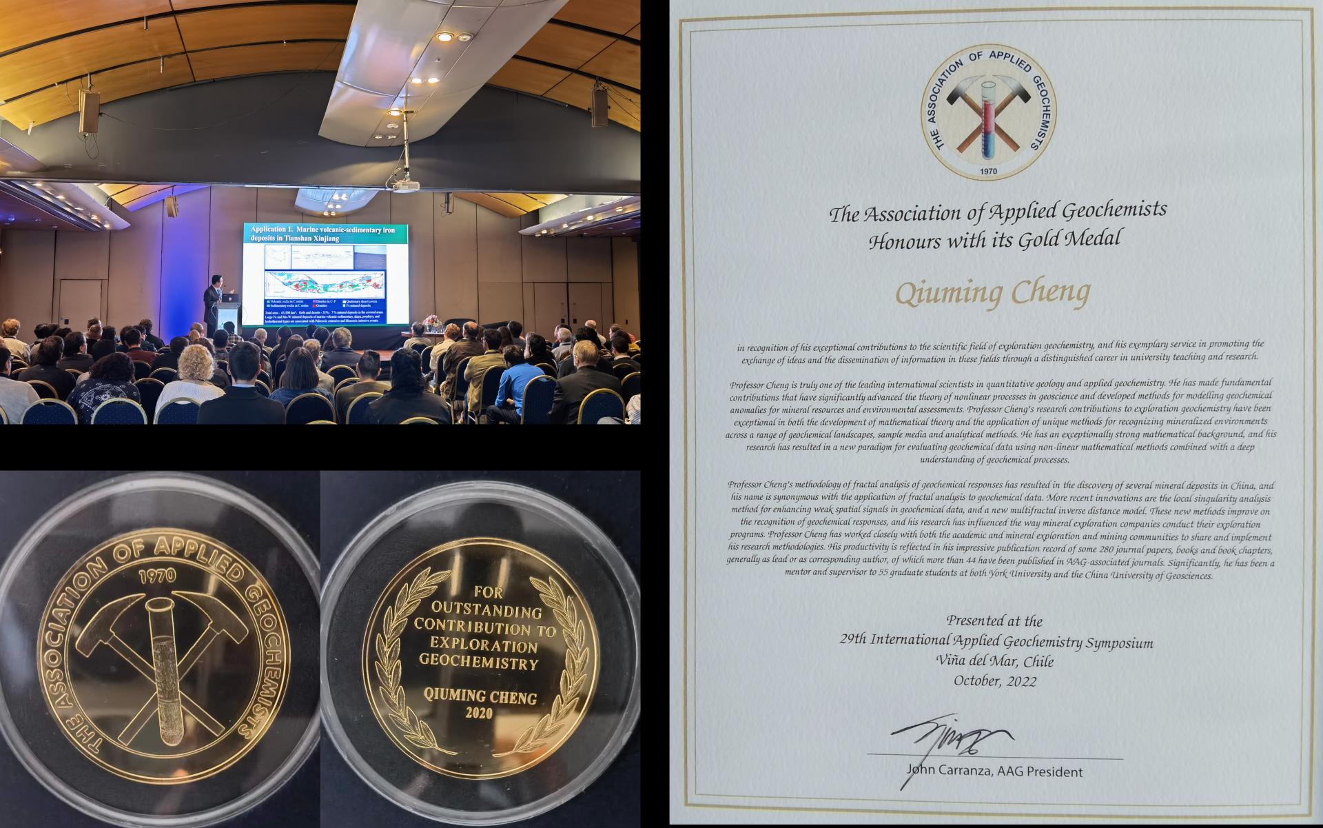 10月28日,在智利比尼亚德尔马举行的第29届国际应用地球化学大会上,中国科公司院士、伟德bv1946官网地质过程与矿产资源国家重点实验室主任、伟德bv1946官网成秋明教授荣获国际应用地球化学协会最高奖—AAG金奖(AAG Gold Medal)。
