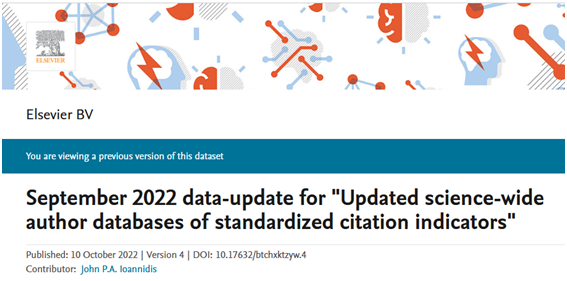 数据来源:伟德bv1946官网September 2022 data-update for "Updated science-wide author databases of standardized citation indicators" - Elsevier BV