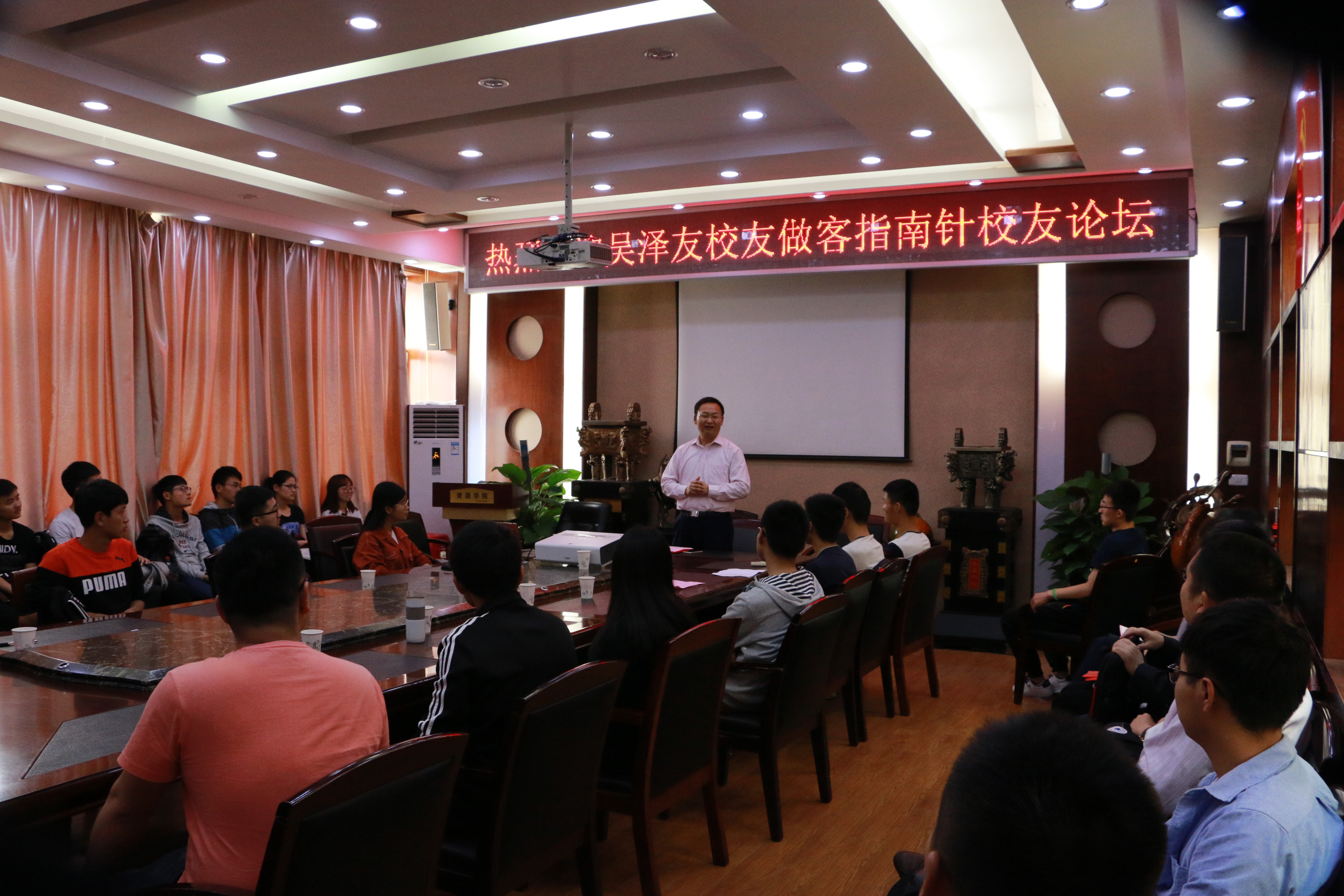 捐赠仪式结束后,吴泽友做客“指南针”员工论坛,与师弟师妹共话成长。他以“老员工综合素质培养”为主线,勉励师弟师妹们树立远大理想,学会人际交往,培养团队精神,锻造自强不息、顽强拼搏的“武气”,文武兼备,全面发展。整个分享过程中掌声不断,师弟师妹听得认真,记得细致,对大学的综合素质培养有了一个更加深入的认识,可谓受益匪浅。