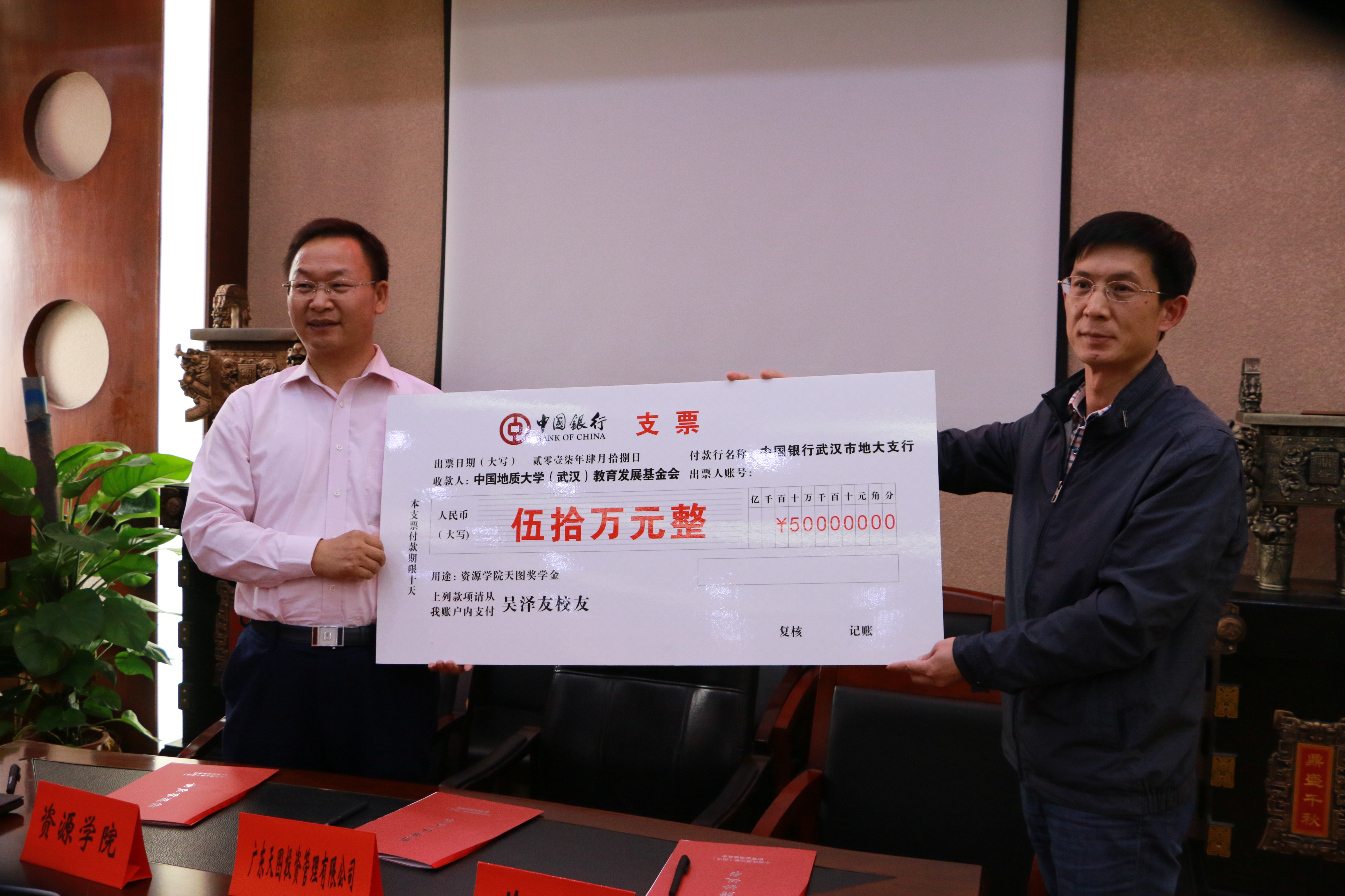 吴泽友表示:“母校”对于他来讲具有非常深厚的感情和特殊的意义,是母校给与了他专业知识,培养了他综合素质,他感谢母校为员工及企业发展搭建了交流与合作的平台,向母校捐款既是应有之义也是感恩之情,自己会一如既往地关心、关注母校的发展,竭尽所能为母校发展做贡献,并祝愿母校在今后的教育事业中取得更加辉煌的成就。