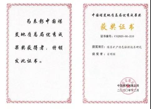 肖明国获得中国煤炭地质总局优秀成果奖