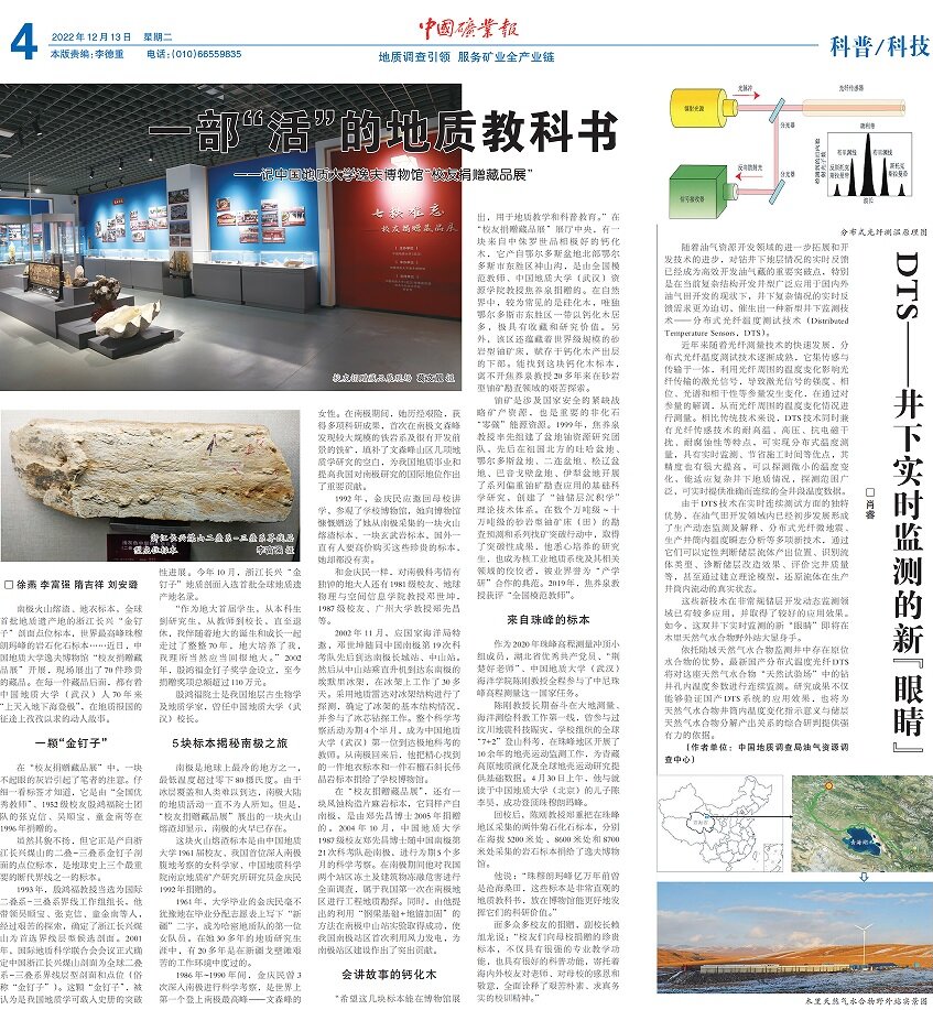 “希望这几块标本能在博物馆展出,用于地质教学和科普教育。”在“员工捐赠藏品展”展厅中央,有一块来自中侏罗世品相极好的钙化木,它产自鄂尔多斯盆地北部鄂尔多斯市东胜区神山沟,是由全国模范教师、伟德bv1946官网(武汉)伟德bv1946官网教授焦养泉捐赠的。在自然界中,较为常见的是硅化木,唯独鄂尔多斯市东胜区一带以钙化木居多,极具有收藏和研究价值。另外,该区还蕴藏着世界级规模的砂岩型铀矿床,赋存于钙化木产出层的下部。能找到这块钙化木标本,离不开焦养泉教授20多年来在砂岩型铀矿勘查领域的艰苦探索。